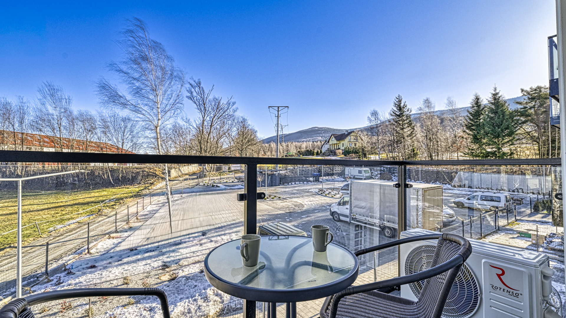 Apartament składa się z jednego, funkcjonalnie urządzonego pokoju z wygodnym łóżkiem dwuosobowym. Z balkonu, wyposażonego w meble, można cieszyć się widokiem na góry i świeżym, karkonoskim powietrzem.