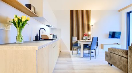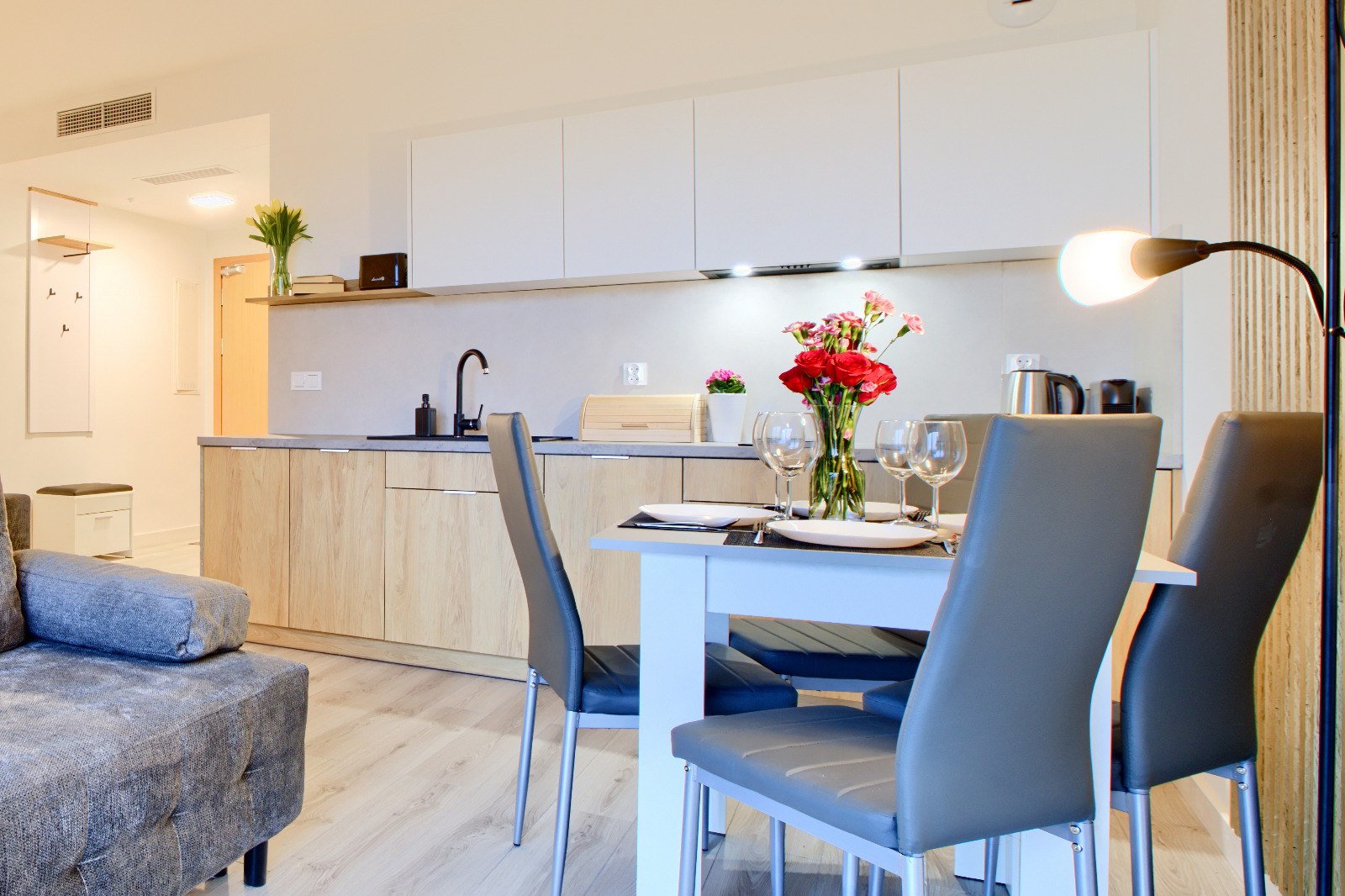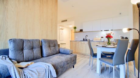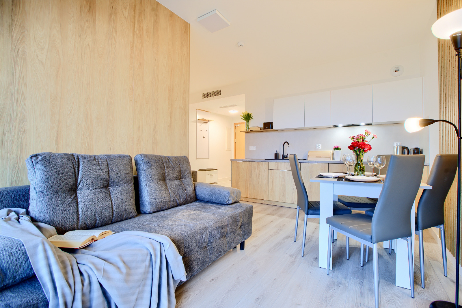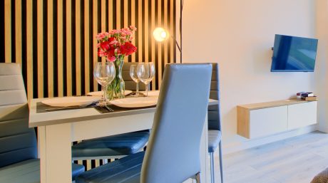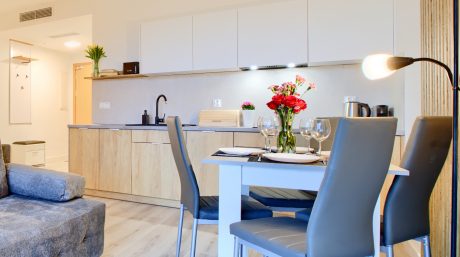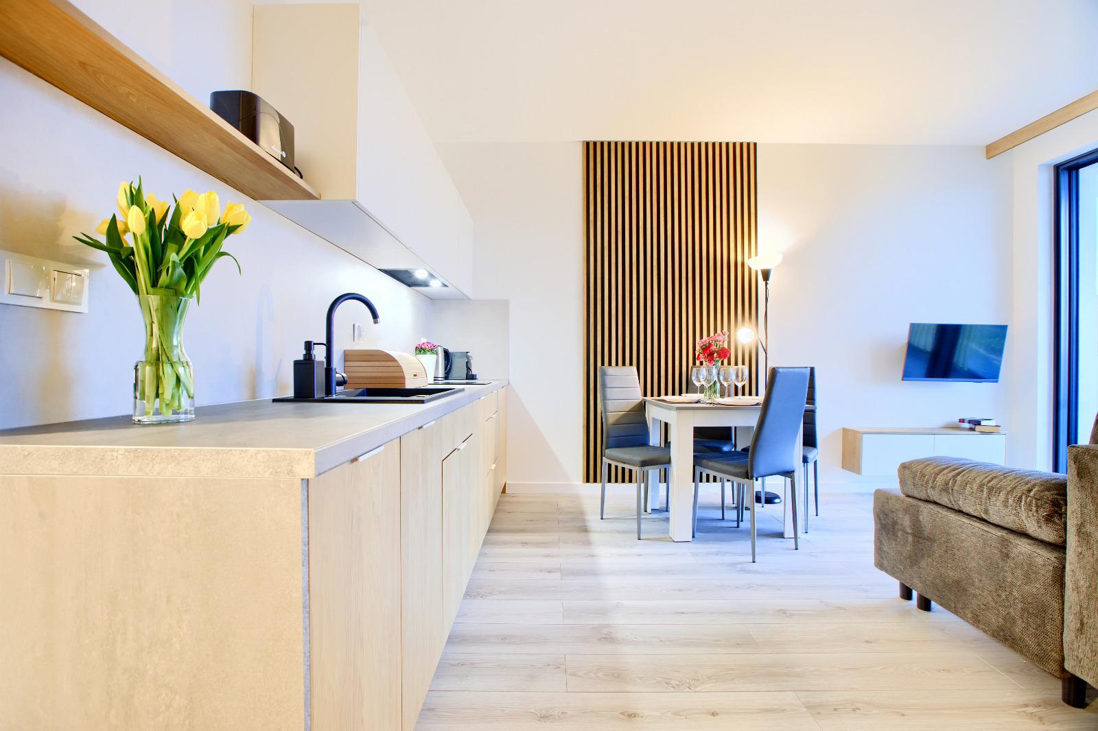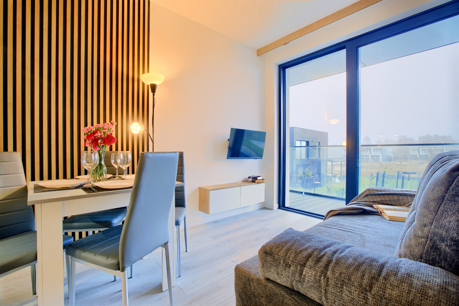 Ten elegancki, czteroosobowy apartament typu Deluxe to idealne miejsce na komfortowy wypoczynek nad morzem. Przestronne i nowocześnie urządzone wnętrza zapewnią wygodę zarówno rodzinom, jak i grupom przyjaciół.