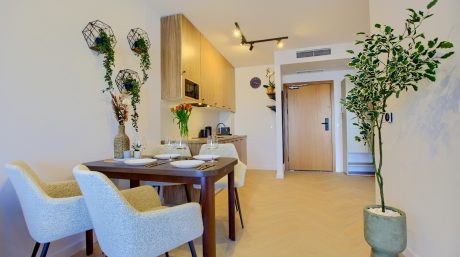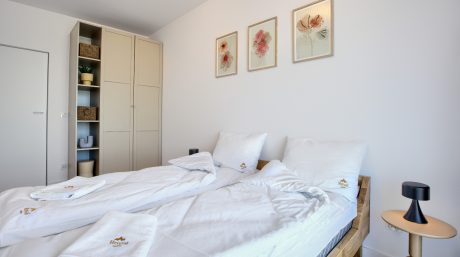Ten elegancki, czteroosobowy apartament typu Deluxe to idealne miejsce na komfortowy wypoczynek nad morzem. Przestronne i nowocześnie urządzone wnętrza zapewnią wygodę zarówno rodzinom, jak i grupom przyjaciół.