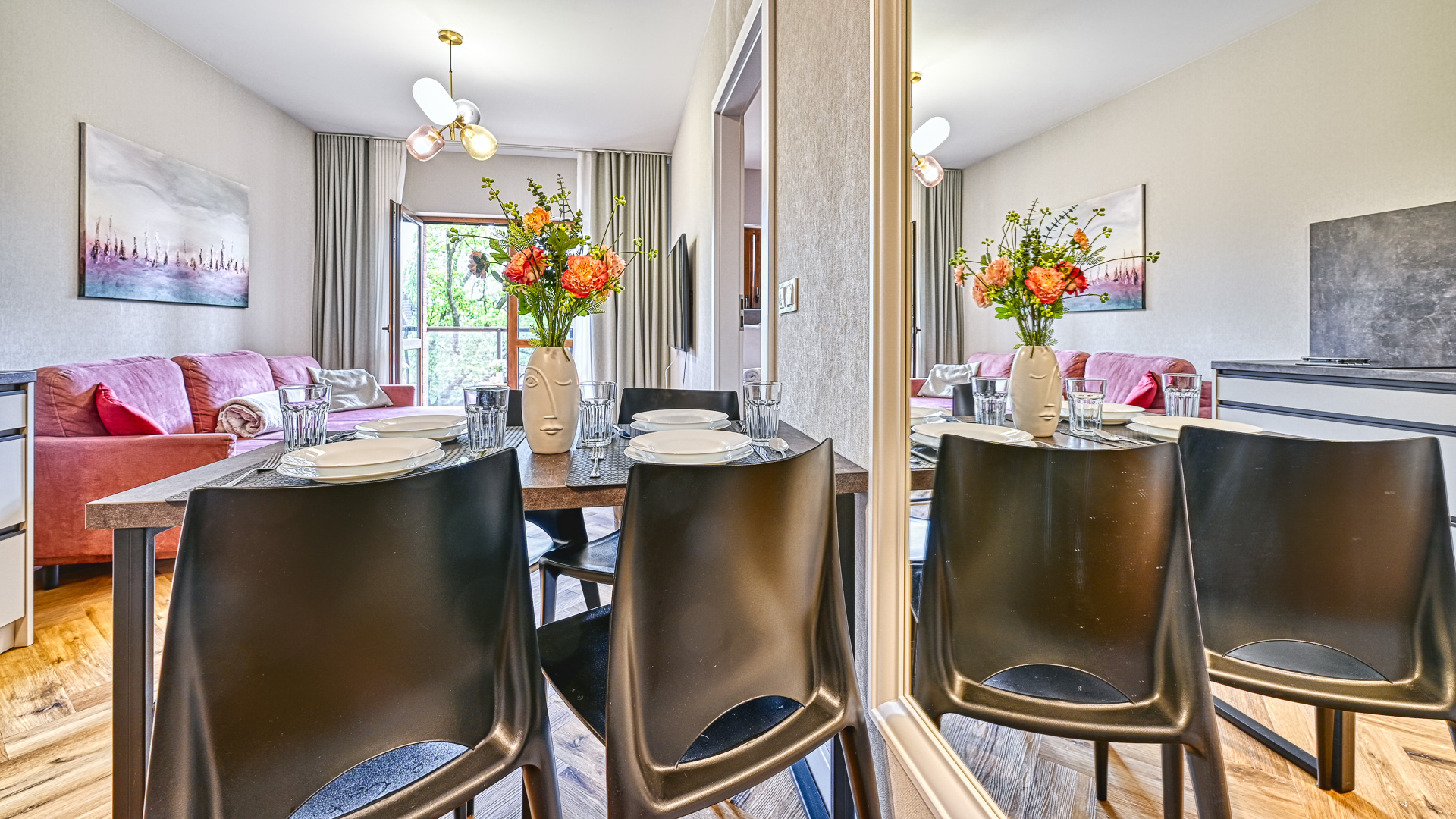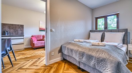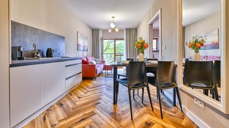 Apartament Green Park Resort VIP 7B/5 to doskonały wybór dla grupy maksymalnie czteroosobowej, szukającej wyjątkowego miejsca wypoczynku w Szklarskiej Porębie, łączącego nowoczesne wnętrza, wygodę oraz relaks w strefie spa & wellness.