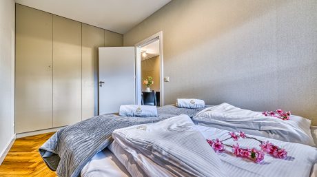 Apartament znajduje się w tym samym budynku co basen kryty.