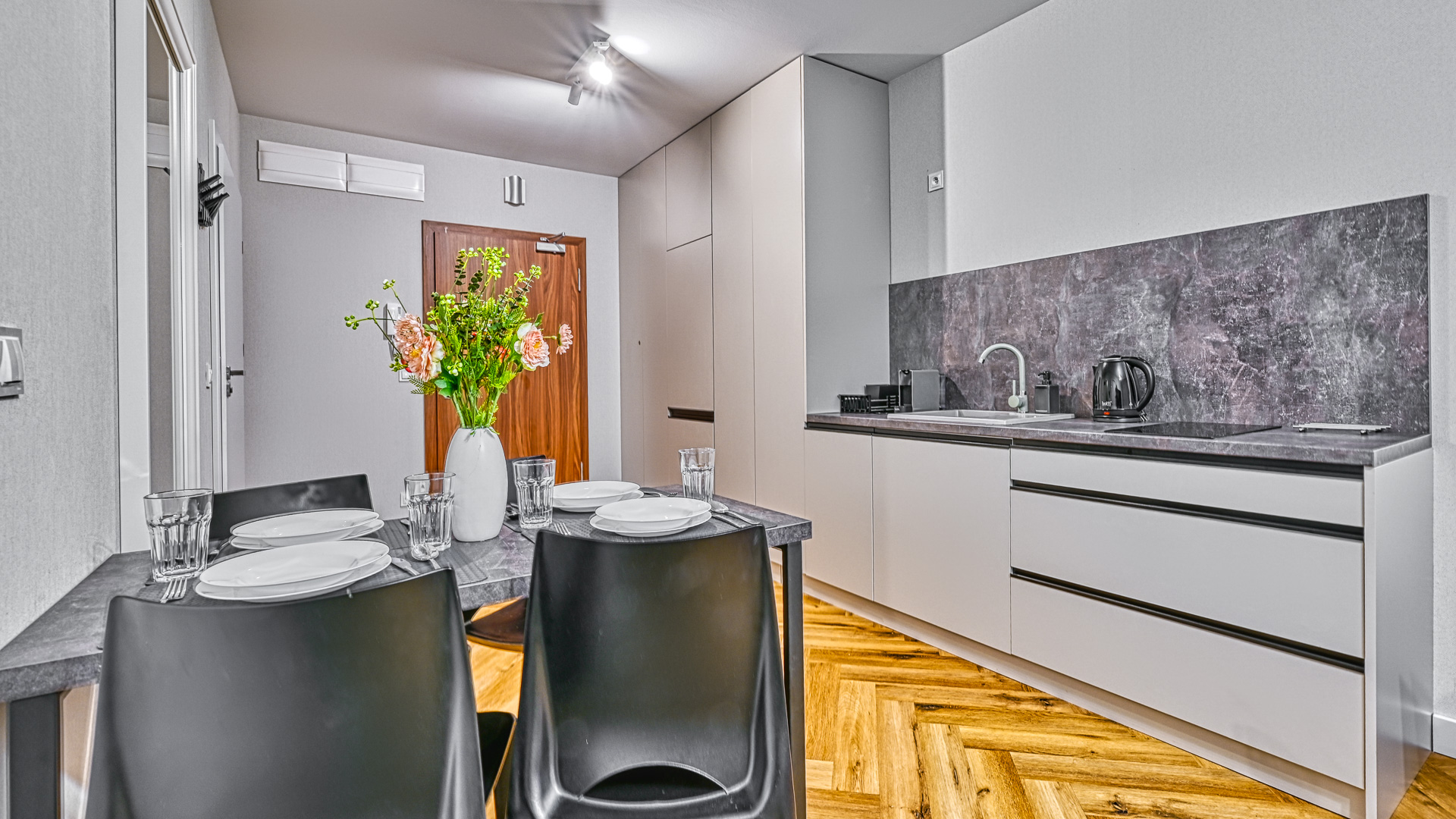 Na wyposażeniu znajduje się wszystko, co potrzebne do komfortowego pobytu: telewizor, bezpłatne Wi-Fi, ogrzewanie, pralka, suszarka do włosów, ręczniki, zestaw kosmetyków oraz żelazko. Aneks kuchenny oferuje m.in. lodówkę, zmywarkę, ekspres do kawy, czajnik oraz komplet naczyń i sztućców.