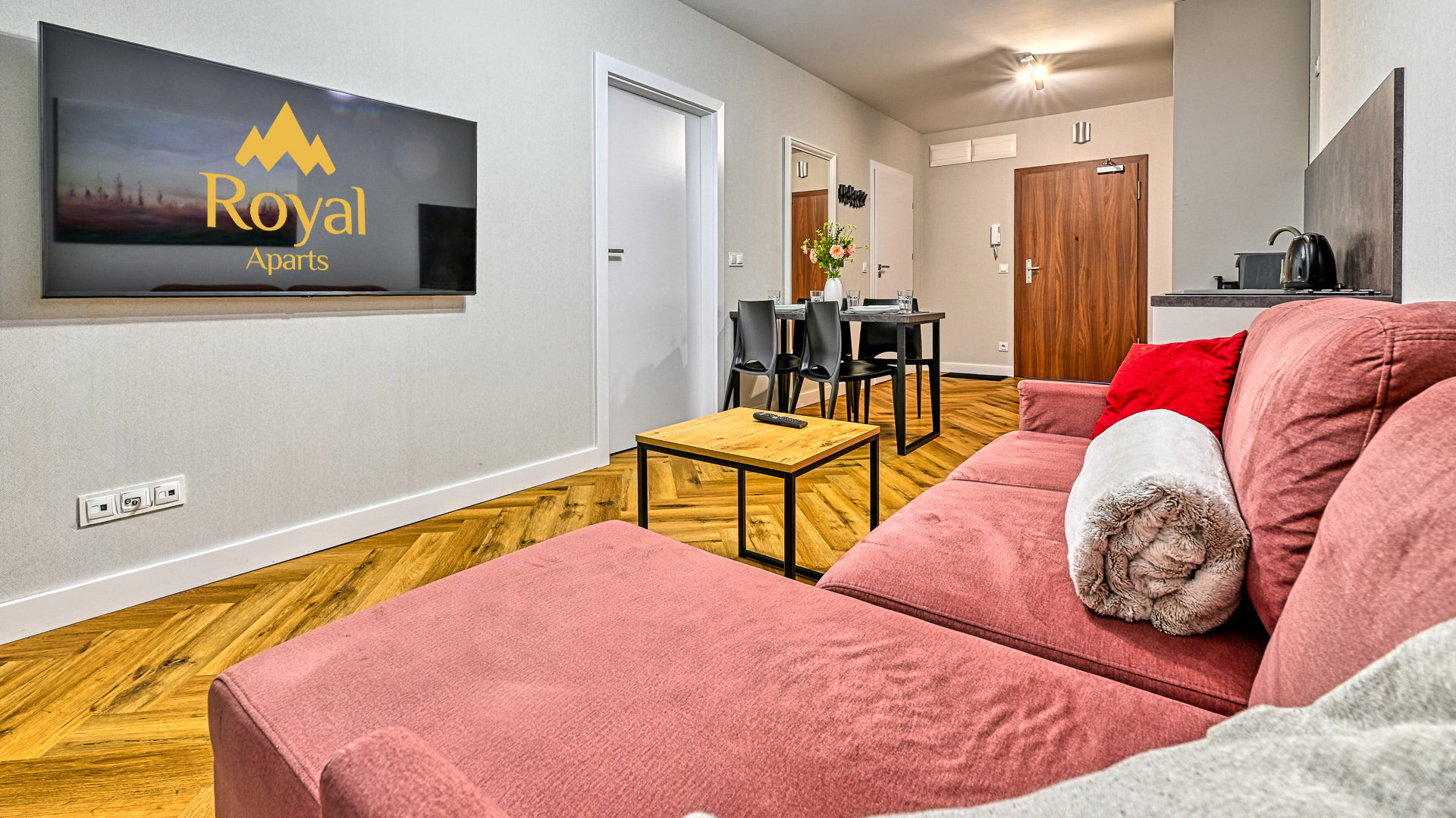 Apartament składa się z przytulnej sypialni z dużym łóżkiem, salonu z rozkładaną sofą, w pełni wyposażonego aneksu kuchennego oraz łazienki z prysznicem. Do dyspozycji Gości jest również balkon, z którego można podziwiać widok na góry.