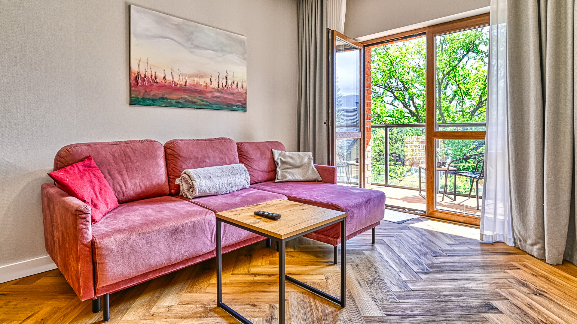 Goście apartamentu mają dostęp do bogatej strefy wellness kompleksu Green Park Resort VIP, obejmującej basen kryty i odkryty, sauny, jacuzzi oraz salę fitness. Na miejscu znajduje się również bezpłatny parking oraz winda w budynku, zapewniająca wygodę podczas pobytu.
